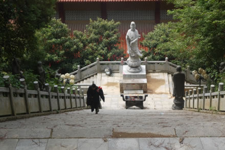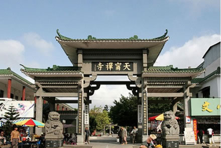 天寧古寺有過極盛的年華,隨著滄桑的變遷,屢經(jīng)摧殘,古寺蕩然無存。至1985年9月僅存一座高不到 二米、面積不足18平方米,風雨飄搖的觀音間,神龕上只有一張圖像供游客參拜,當年61歲的萬仁英同志,誠虔地來此剃發(fā)為尼,授法號叫釋順因,并將她多年的積蓄六千元贊助寺內(nèi)作經(jīng)費。在古寺住持垂范下,用了七年時間,建成了一座氣派軒昂,規(guī)模宏偉的綜合性寺廟。建筑面積達五千平方米,屹立在灣里區(qū)南端,接待八方香客和游人。