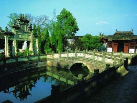 妙濟橋位于梅嶺景區(qū)內(nèi),呈灰白色,為單孔石拱橋,橋欄有十二根石柱,每個石柱頂?shù)窨讨恢华{子,形態(tài)各異,栩栩如生。此橋曾為木橋,清朝嘉慶丁丑年改建為石橋,橋碑上刻著“嘉慶丁丑”、“秋月吉旦”等字樣。
