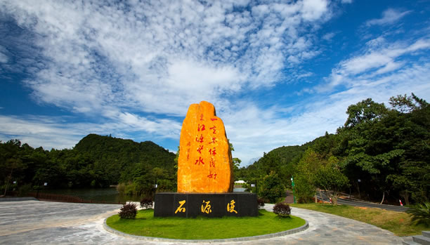 護源石是2017年紀念香港回歸20周年時所立,石碑上“一定要保護好東江源頭水”為周恩來總理的親筆題詞。1963年,香港遭遇了60多年來最嚴重的一次干旱,350萬人的生活因缺水陷入困境。當年12月,周恩來總理親自批示,撥?钣昧11個月的時間在深圳建成了東深供水工程,把東江的水引到香港,從此結(jié)束了香港長期缺水的歷史。護源石形狀像一只手掌,寓意用手護源,石頭高5.23米,與東江流域長度523公里相對應(yīng),寬3米,代表贛、粵、港三地;護源石底座長4.65米,與三百山到香港的距離465公里相對應(yīng);花壇采用圓形,寓意“圓圓滿滿”。
