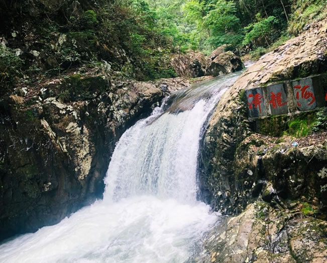 東江第一瀑由福鰲塘和山上大小溪流匯集而成,瀑布單級落差120多米,是目前景區(qū)發(fā)現(xiàn)單級落差最大的常流瀑布,氣勢雄偉,兩側(cè)峭壁凌空,古木參天。飛瀑前方視野開闊,遠處青山疊翠,林海蒼茫,令人心曠神怡。石壁上東江源三個字是由全國政協(xié)原副主席葉選平題寫。