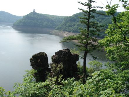 松花湖風景名勝區(qū)地形地貌復雜,群山環(huán)抱,千米以上山峰眾多,石壁挺拔,懸崖峻峭。松花湖的水源主要來自松花江等河流,最大蓄水量可達108億立方米。氣候方面,松花湖全年平均氣溫3至4攝氏度,夏季平均氣溫約22攝氏度,晝夜溫差較大。植被覆蓋率高,包括天然林和人工林,生長著多種樹木、中草藥、山果、蘑菇和野菜。同時,該地區(qū)生物資源豐富,盛產(chǎn)多種淡水魚類,并棲息著多種禽類和野生獸類。景區(qū)布局上,松花湖分為山水風光經(jīng)典游賞軸線、風景游賞區(qū)、旅游接待區(qū)和風景保育區(qū)等功能區(qū)域,包含11個景區(qū)74處景點,如五虎島、臥龍?zhí)、駱駝峰、鳳舞池、石龍壁、摩天嶺、額赫島等。