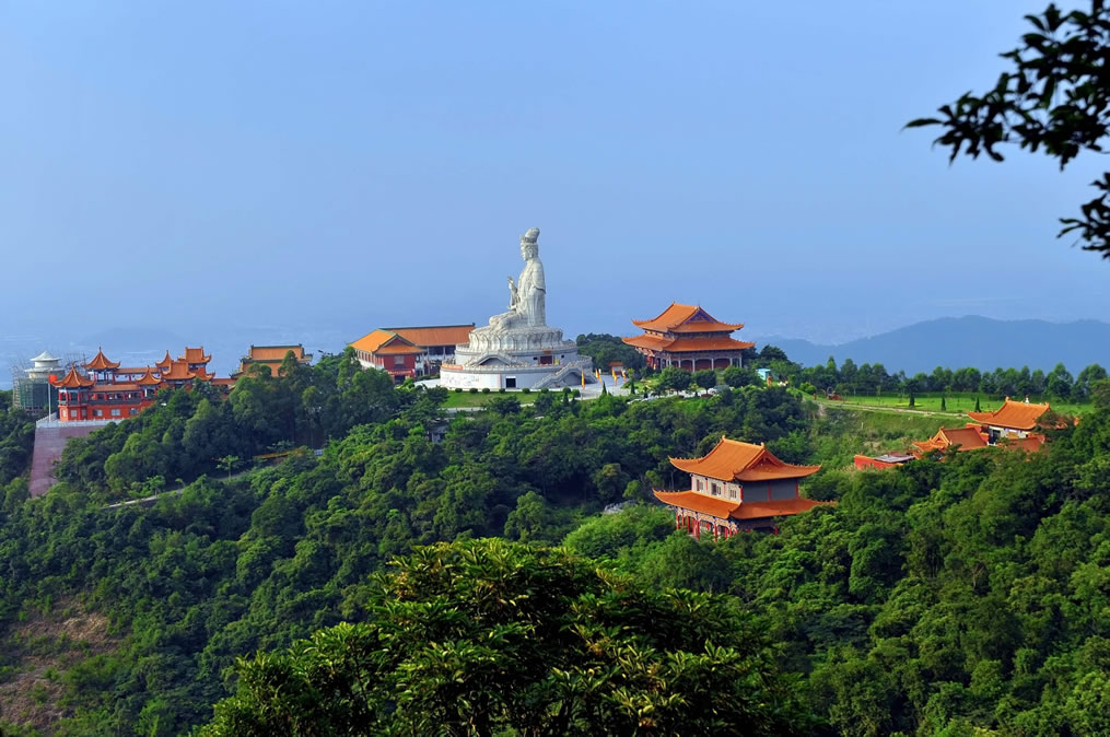 廣東觀音山國(guó)家森林公園,位于廣東省東莞市樟木頭鎮(zhèn)筆架山路190號(hào)觀音山,地處珠江三角洲東南部,東莞市東部,樟木頭鎮(zhèn)中心邊緣,距鎮(zhèn)中心1.5千米,距離東莞市區(qū)大約40千米,總面積657.18公頃。廣東觀音山國(guó)家森林公園最高點(diǎn)為耀佛嶺,海拔566米,觀音山海拔488米。屬丘陵山地地貌。所在地區(qū)樟木頭鎮(zhèn)屬南亞熱帶海洋性季風(fēng)氣候區(qū)。森林覆蓋率達(dá)92%以上,常見植物種類有73科199種。其中屬國(guó)家保護(hù)的動(dòng)植物22種,瀕危植物包括粘木、白桂木、蘇鐵蕨、土蠶霜、金茶花、野茶樹和野生龍眼等。有獸類、飛鳥類、甲殼類、昆蟲類等300多種動(dòng)物。廣東觀音山國(guó)家森林公園內(nèi)建成了以正門樓、觀音廣場(chǎng)、觀世音菩薩法像、仙宮嶺、普渡溪、感恩湖、回音壁、怡心亭、慈云閣、先人石壘、古樹博物館、國(guó)際會(huì)展中心、仙泉游泳館等20余處景點(diǎn);內(nèi)設(shè)6.8千米的吉祥路(佛光路),既可觀景也可休閑健身;還有飛天威亞、龍鳳天梯、冰雪樂園、山地越野車等娛樂項(xiàng)目,是親子家庭放松休閑、寓教于樂的自然課堂。