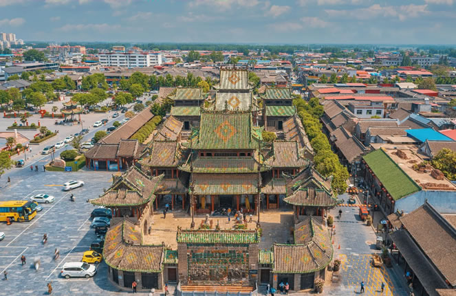 - 特色:始建于清乾隆二十一年(1756年),歷時136年竣工,占地10885.29平方米,現(xiàn)存亭臺樓閣130余間。融合宮殿、廟宇、商館、民居園林風(fēng)格,以“三雕”(石雕、木刻、磚雕)和“三絕”(琉璃照壁、懸鑒樓戲臺、春秋樓遺址)聞名,是晉商文化與中原建筑藝術(shù)的巔峰之作。