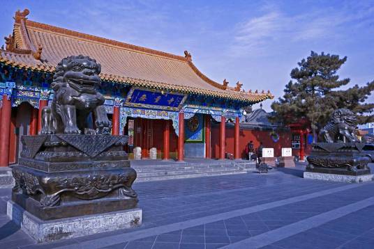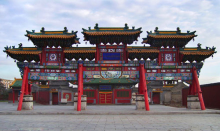 大召,明代稱“弘慈寺”,歷史上又有“銀佛寺”“大乘法輪召”“甘珠爾廟”“帝廟”等多種稱謂。大召,是一座大藏傳佛教寺院,是呼和浩特最早建成的黃教寺院,也是蒙古地區(qū)僅晚于美岱召的蒙古人皈依黃教初期所建的大型寺院之一,屬于格魯派(黃教)。占地面積約3萬平方米,其中建筑面積為8000多平方米。大召寺院座北向南,總體布局是伽藍七堂形制,由正院、東倉和西倉三大院落單位成,東西兩倉各有倉門,北端互通構成環(huán)繞寺廟的甬道。主軸線上由山門、天王殿、菩提過殿、大雄寶殿和九間樓組成。大召的藏品豐富,堪稱大召“三絕”的銀佛、龍雕、壁畫佛殿內的各種彩塑、金銅造像、晾佛節(jié)展開的巨幅唐卡、108部的甘珠爾經卷,以及宗教活動使用的各種法器,面具等都是較珍貴的歷史文物和藝術珍品。