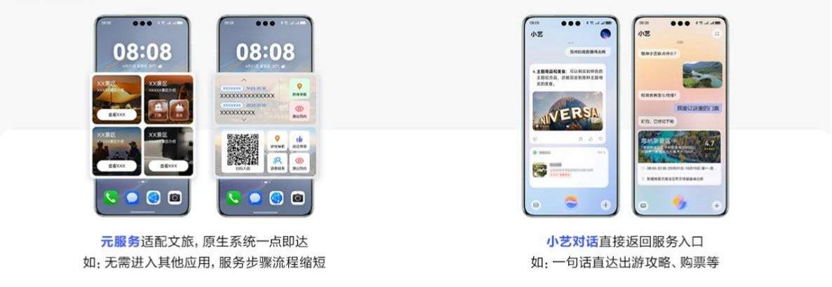 在游客準(zhǔn)備出行前,鴻蒙文旅行業(yè)解決方案在景區(qū)信息查詢(xún)、票務(wù)預(yù)訂、導(dǎo)航導(dǎo)覽、餐飲及旅游服務(wù)等方面也盡顯強(qiáng)大便捷性。游客可以利用“小藝小藝”語(yǔ)音快捷訂票功能,輕松完成票務(wù)預(yù)訂,相較于傳統(tǒng)的訂票方式,這一功能能夠減少操作流程,大大節(jié)省了時(shí)間。同時(shí),基于POI點(diǎn)位推送功能,系統(tǒng)會(huì)實(shí)時(shí)向游客發(fā)送出行、接送機(jī)、目的地酒店等提醒信息,確保游客不會(huì)錯(cuò)過(guò)任何重要的出行信息。此外,原生鴻蒙的近場(chǎng)推薦功能也能夠在出行前為游客提供個(gè)性化的服務(wù)信息。例如,當(dāng)游客計(jì)劃前往某個(gè)景點(diǎn)時(shí),系統(tǒng)會(huì)根據(jù)游客的位置和興趣,自動(dòng)推送該景點(diǎn)的介紹信息,幫助游客更好地了解景點(diǎn)的特色與歷史文化背景,為出行做好充分的準(zhǔn)備。