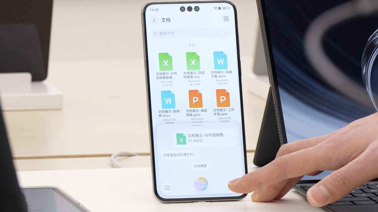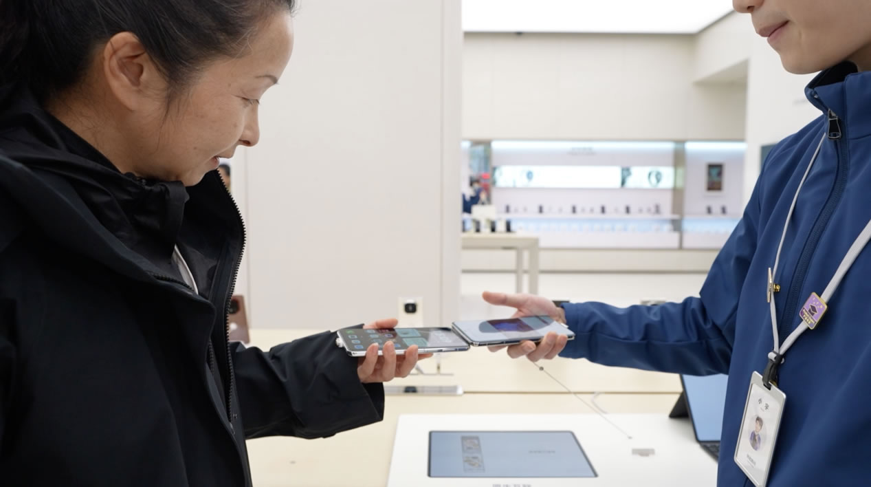 十一點(diǎn),大家聚在一起頭腦風(fēng)暴。張晴把方案資料共享給同事,照片、視頻、文件,甚至正在觀看的網(wǎng)站,都可以通過(guò)「華為共享」直接傳輸。面對(duì)面辦公就更方便了,兩臺(tái)手機(jī)「碰一碰」,傳送門(mén)就出現(xiàn)了。