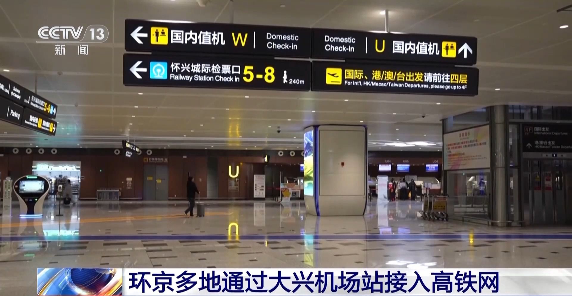 北京大興國際機(jī)場公共區(qū)管理部業(yè)務(wù)經(jīng)理 焦永杰:為加強(qiáng)城際鐵路大興機(jī)場站與大興機(jī)場的信息共享,我們將列車動態(tài)信息顯示前置航站樓。后期大興機(jī)場與鐵路部門將繼續(xù)加強(qiáng)業(yè)務(wù)互動與信息共享,持續(xù)提升列車與航班在運力、時刻方面的匹配度。