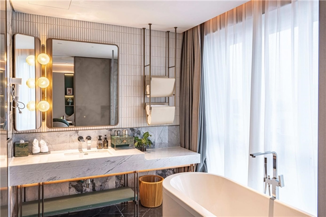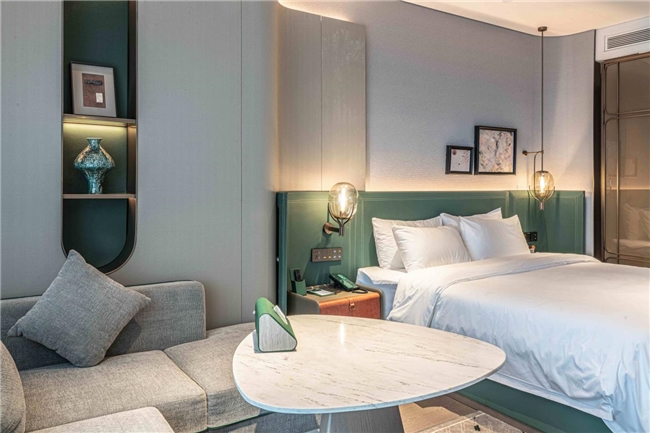 客房設(shè)計(jì)同樣體現(xiàn)了高端酒店的精致與舒適,每間客房均采用開(kāi)放式布局,空間開(kāi)闊,搭配定制照明系統(tǒng),營(yíng)造溫馨私密氛圍。智能控制系統(tǒng)讓賓客可輕松調(diào)控?zé)艄、溫度及娛?lè)設(shè)備,科技融入自然流暢。浴室配備豪華衛(wèi)浴設(shè)施與高品質(zhì)洗浴用品,保障尊貴洗浴體驗(yàn)。全景落地窗設(shè)計(jì)更是將武漢沙湖美景引入室內(nèi),讓賓客足不出戶(hù)即可飽覽城市風(fēng)光。
