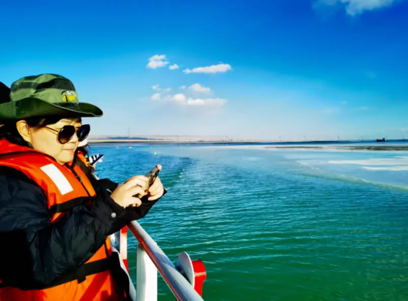 10月14日,由中共海西州委宣傳部主辦、西海都市報(bào)社承辦的“紅杞風(fēng)光別樣美 ”活動(dòng),走進(jìn)海西蒙古族藏族自治州烏蘭縣,研學(xué)團(tuán)隊(duì)來(lái)到茶卡鹽湖,乘坐游船觀光,湖面上駛來(lái)的大型運(yùn)鹽船讓外省記者及學(xué)生不由感嘆:沒想到“天空之鏡”還有另外一種獨(dú)特景致。湖面上駛來(lái)的大型運(yùn)鹽船吸引了研學(xué)團(tuán)隊(duì)成員的目光。采鹽船正在鹵水中作業(yè),發(fā)出低沉的轟鳴,空氣中彌漫著咸潤(rùn)的氣息。研學(xué)的同學(xué)通過實(shí)地觀察鹵水的蒸發(fā)、結(jié)晶過程,將課本上的地理、化學(xué)知識(shí),與這片壯麗的現(xiàn)實(shí)場(chǎng)景融會(huì)貫通。