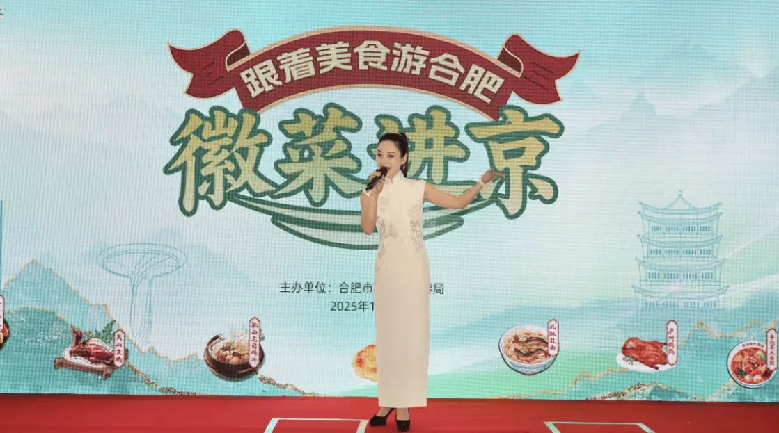 18:30,活動(dòng)正式拉開帷幕,美食宣傳片帶觀眾在線“品嘗”徽味的獨(dú)特魅力和徽廚的匠心故事;現(xiàn)場(chǎng)演繹的黃梅戲唱腔婉轉(zhuǎn),將江淮柔情融入京華夜色;合肥市文旅局代表登臺(tái)推介,帶眾人感受合肥這座“科里科氣”與“文里文氣”并存的城市魅力。