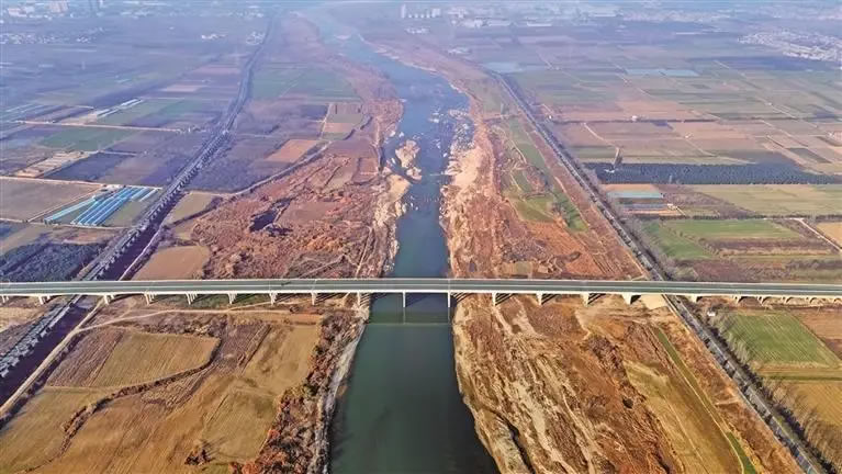 全長(zhǎng)1106米的渭河特大橋是眉太高速公路控制性工程。圖為12月21日航拍的渭河特大橋(資料照片)。