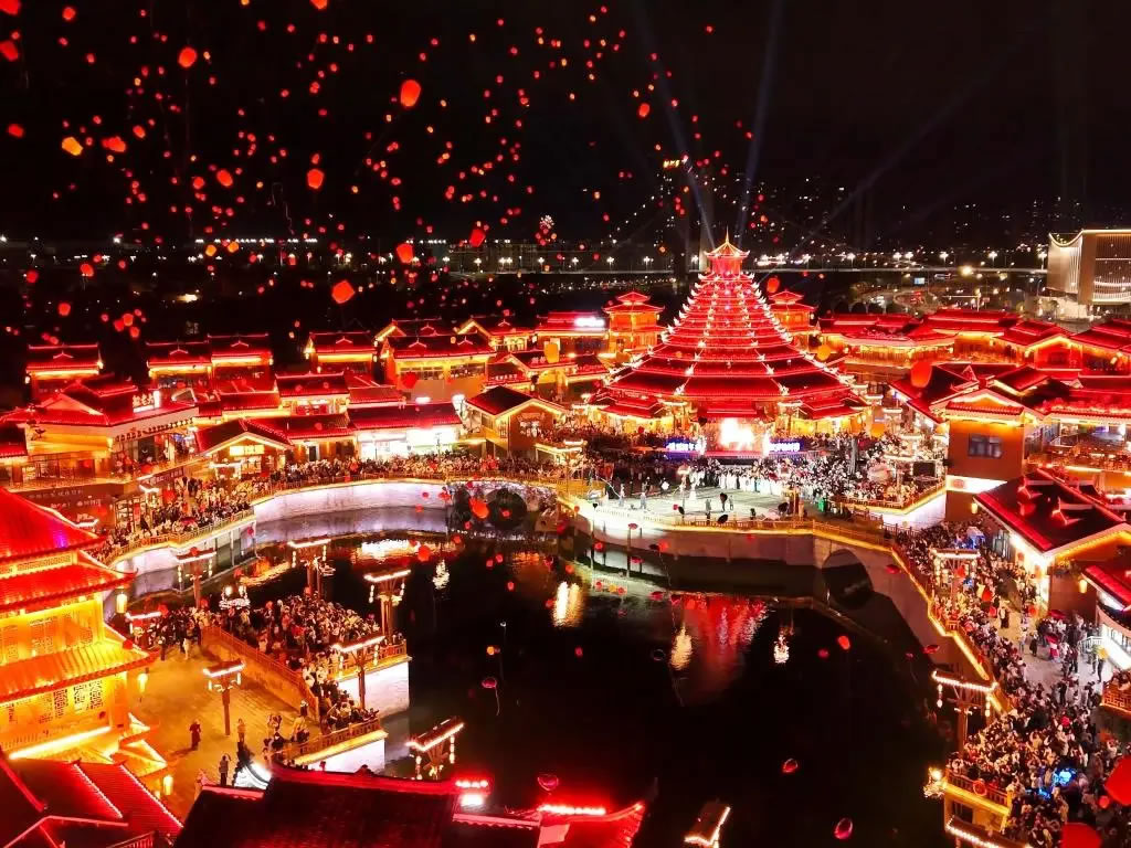 臨近午夜,榆樹灣·青春廣場迎來全天氛圍最高潮,游客們在孔明燈燈面上寫下新年愿望,在工作人員的指引下有序放飛。點點燈火隨風飄蕩,與夜空融為一體,構(gòu)成“千盞飛燈映星河”的浪漫畫面。
