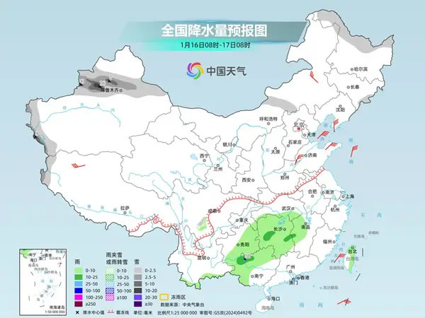 中國天氣網(wǎng)訊 今天(1月16日)是三九最后一天,我國大部將持續(xù)偏暖;明天隨著四九開場(chǎng),一場(chǎng)寒潮來襲,中東部大片地區(qū)將經(jīng)歷冷暖逆轉(zhuǎn)。與此同時(shí),雨雪天氣也將增多,黃淮、江淮等多地將現(xiàn)較強(qiáng)降雪, 湖南、貴州等地部分地區(qū)或現(xiàn)凍雨。