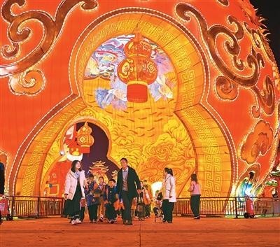 敘事主題的豐富,讓彩燈成為講述中國故事的載體。180米長的《木蘭傳奇》燈組步道上,花木蘭的颯爽英姿與家國大義徐徐鋪展,傳統(tǒng)人物的精神內(nèi)核在現(xiàn)代光影技藝演繹下直抵人心。抬眼望去,全長210米、高達32米的鯤鵬燈組震撼全場,“鯤鵬展翅”的視覺奇觀與當代載人航天、深潛等場景光影交融。福祿廣場,藻井如蓮花般旋轉,光影“福”字“從天而降”落入游客掌心,讓“伸手接福”從“吉祥話”變成可觸碰的溫暖記憶。