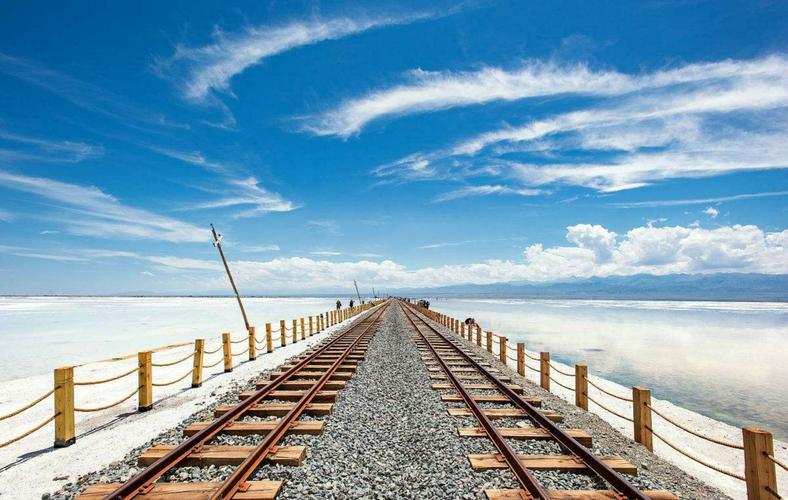茶卡鹽湖景區(qū)擁有國(guó)內(nèi)首個(gè)鹽湖生態(tài)環(huán)保型觀光游船,游客可以乘小火車到達(dá)鹽湖碼頭站后乘游艇,去領(lǐng)略現(xiàn)代工業(yè)采鹽的風(fēng)景。