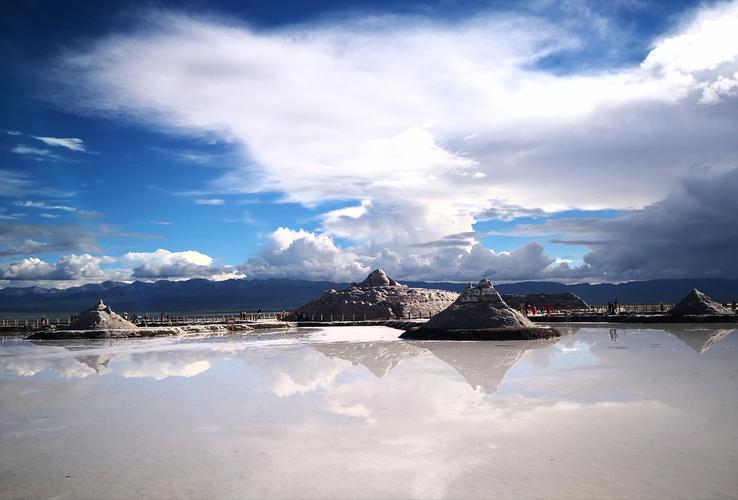 茶卡鹽湖四周雪山環(huán)繞,平靜的湖面像鏡子一樣,反射著美麗的令人陶醉的天空景色,被譽(yù)為“中國(guó)的天空之鏡”,置身于鹽的世界,漫步湖面如行走云端之上,水映天,天接地,人在湖間走,宛如畫中游。茶卡鹽湖一年四季美景連連,春日里低懸于天際的白云落在湖水里,分不清是鹽更白還是云更白;夏季碧波蕩漾的湖水翡翠一般綠的沁人心扉;秋天干涸的湖面冰清玉潔,平坦無(wú)垠;冬天的蒼涼荒蕪更具挑戰(zhàn)。