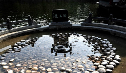位于百脈泉公園清照園內(nèi),泉池圓形,直徑3米,深0.5米,形若圓盤,泉中池底鋪鵝卵石,泉噴水花色白如玉,噴高可達數(shù)尺,水落池中如玉石片片,碧水洗白玉,浩純無暇故名白玉泉(漱玉泉),更與墨泉遙相呼應(yīng),一黑一白,一暗一明,共匯繡江。給李清照故里增添了一幅秀麗的畫卷。仰首西望,易安樓琴聲陣陣,海棠軒茗香輕飄,黃花館書畫琳瑯,金石苑古色古香。泉水風貌,文化品味融為一體,給清照園增添了耀眼的光彩。