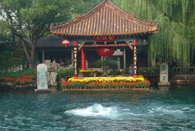 趵突泉又叫檻泉,是濼水的源頭,如今已有二千七百年的歷史。“趵突泉,三窟并發(fā),聲如隱雷”,“泉源上奮,水涌若輪”。泉水一年四季恒定在攝氏18度左右,嚴冬,水面上水氣裊裊,薄霧冥冥,一邊泉池波光粼粼,一邊是亭臺樓閣,金壁煌煌,構(gòu)成了一幅奇妙的人間仙境。歷代著名文學家、哲學家、詩人諸如曾鞏、蘇軾、張養(yǎng)浩、王守仁、蒲松齡等都有吟泉都忍不住在此留下美文以志之。
