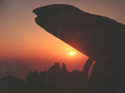 泰山石外表多見不規(guī)則卵形,結(jié)晶顆粒較粗,紋理清晰,畫面突出,對比色調(diào)強(qiáng)烈,備陽剛豪放氣概。細(xì)品之,則見泰山供石如母體泰山的壯美,絕不以巧秀悅?cè)耍使艠闳缰袊嫷那甯叩;蛏剿,或人物,或文字,或鳥獸,各得其妙。由于粗獷,泰山石在適當(dāng)?shù)囊曈X距離更顯現(xiàn)出中國畫大寫意的神韻!妒拧氛f,泰山“麻石中有文如阿拉伯?dāng)?shù)字者,泰山也稱之文字花崗石”。文字花崗石在泰山石中占有一定比例;觀其書法,當(dāng)見線條奇異,鐵劃銀鉤,力透石背,剛?cè)嵯酀?jì),可使人領(lǐng)悟先甲骨,勝鐘鼎,顏、柳、米、蔡猶不及的天書風(fēng)采。“岱岳美名五洲揚(yáng),千載神說接大荒,中華奇石數(shù)不盡,唯有泰山石敢當(dāng)”。神秘而粗獷的泰山石有25億年歷史,是最古老的巖石之一。泰山石是“天下第一山”——泰山母親的子孫,博得觀賞大雅之美名,實得益于母體泰山在中華民族中的神山地位。炎黃先民在泰山布靈石,焚柴草,行祭禮,是屬原始的靈石崇拜。自秦始皇登臨泰岱立石頌德,其后歷朝天子,封禪而置石者,代不乏人。千百年來,上至天子權(quán)貴,下到鄉(xiāng)民游子,他們立泰山石行封禪大典,壓泰山石乞子求福,供泰山石膜拜神靈,取泰山石為基作臺,以泰山石鎮(zhèn)齋鎮(zhèn)館等,于是乎逐漸將對泰山的崇拜信仰與泰山的賞石文化自然融合起來。 |