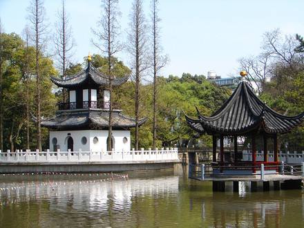 是一座具有獨特風(fēng)格的明代園林,由明代龔氏園、沈氏園、金氏園和城隍廟合并而成,為上海五大古典園林之一。秋霞圃以清水池塘為中心,石山環(huán)繞,古木參天,造園藝術(shù)獨特,分桃花潭、凝霞閣、清鏡堂、邑廟等四個景區(qū)。桃花潭景區(qū)的池上草堂,有“一堂靜對移時久,勝似西湖十里長”的贊譽(yù)。凝霞閣景區(qū)的“環(huán)翠軒”軒西有復(fù)廊式“碑廊”,上集明清碑刻17方。從西門入園,院內(nèi)森桂軒的四周遍植桂樹;軒南置明代遺物“三星石”,分別取名“福、祿、壽”;園內(nèi)還有一“涉趣橋”,建于民國十年(1921年),連接曲徑北岸,橫跨幽泉清溪。
