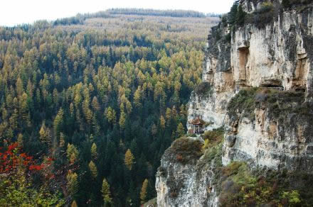懸崖棧道位于涔山鄉(xiāng)張家崖村西的翔鳳山上,創(chuàng)建年代可上溯到唐朝貞元年間。原長(zhǎng)42華里,一座座懸空古剎由棧道相連,驚險(xiǎn)絕倫,獨(dú)具特色,是“中國(guó)華北地區(qū)罕見(jiàn)的水平聯(lián)洞型棧道”,也是寧武縣古十景之一。