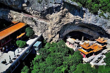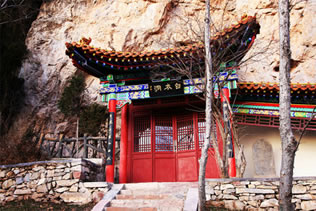 龍王洞在天竺寺景區(qū),位于石膏山上巖溶洞之東側,洞高5米,寬8米,深10米許,洞內(nèi)建龍王祠。龍王祠面闊一間。洞前辟有四級平臺,紅條石漫地,松柏間植,環(huán)境幽雅。洞東通一小洞,深不可測,洞口壁上有赭紅字跡“龍水宮”;洞內(nèi)泉水汩汩而出,清澈異常。洞外崖壁石縫間平生一株山桃,主桿直徑不過10厘米,貼地生出百十根分枝,呈扇面狀。“扇面”有3米多長、2米多寬。每逢陽春三月,滿樹桃花盛開,有如鳳凰展翅。這就是石膏山古景之一的“龍鳳呈祥”。 |