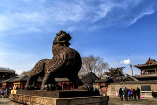 城隍廟是國務(wù)院重點(diǎn)文物保護(hù)單位,也是國內(nèi)保存最完整的城隍廟之一。占地面積6000平方米,始建于元至正二十二年(公元1362年),廟內(nèi)主殿建筑結(jié)構(gòu)精巧細(xì)致。主殿前 有玄鑒一座,高達(dá)25米,頗為壯觀,1999年世界歷史文化遺址保護(hù)基金會(huì)公布為全球最精美的古建筑之一,城隍廟是古代宗教文化中普遍崇祀的重要神之一,是護(hù)城佑民、主掌茗 籍之神。是古代“人神共治”思想的明確反映 。城隍廟前,有兩尊貔貅(pi xiu)威武地橫在門前的廣場(chǎng)上。這種據(jù)說只有嘴沒有屁眼的獸喻意“只進(jìn)不出”,是發(fā)財(cái)?shù)娜皤F。在陽光下.鑄鐵的貔貅昂首挺胸,威風(fēng)凜凜,像一對(duì)忠誠的衛(wèi)士,日夜鎮(zhèn)守在古城。