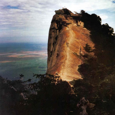 南峰海拔2160.5米,是華山最高主峰,也是五岳最高峰,古人尊稱它是“華山元首”。登上南峰絕頂,頓感天近咫尺,星斗可摘。舉目環(huán)視,但見群山起伏,蒼蒼莽莽,黃河渭水如絲如縷,漠漠平原如帛如如綿,盡收眼底,使人真正領(lǐng)略華山高峻雄偉的博大氣勢,享受如臨天界,如履浮云的神奇情趣。