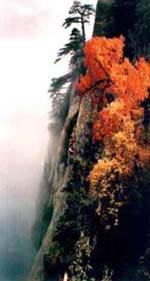 “通天亭”,因和山頂金鎖關(guān)通天門遙遙相對,所以叫“通天亭”,從這兒出玉泉院,“自古華山一條路”就從大家腳下開始沿伸,全長25華里,共有9567個臺階,沿途各位可以看到迷人的風(fēng)光山色,誘人的驚險神道。