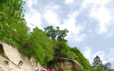 余處,有凌空架設(shè)的長空棧道,三面臨空的鷂子翻身,以及在峭壁絕崖上鑿出的千尺幢、百尺峽、老君犁溝等。其中華岳仙掌被列為關(guān)中八景之首。