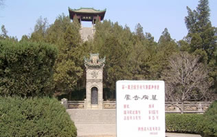 “為冢象祁連山”。元狩六年(前117年),24歲的大司馬驃騎將軍霍去病去世,謚號(hào)景桓侯。漢武帝對(duì)霍去病的死非常悲傷,他調(diào)來(lái)玄甲軍,列成陣沿長(zhǎng)安一直排到茂陵霍去病墓地。其冢象“祁連山”,以表彰他的不朽功勛;羧ゲ∧沟撞磕媳遍L(zhǎng)101.50米,東西寬73米。頂部南北長(zhǎng)15米,東西寬8米,占地面積5841.33平方米,封土體積62961.24立方米。墓冢上下,墓地周圍,亂石嶙峋,蒼松翠柏,蔭蔽墓身,一派山林幽深景象。墓南、北面東西兩角,各有回欄曲徑,通向墓頂,成為國(guó)家首批“AAAA”級(jí)旅游景區(qū)。