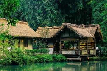 杜甫草堂博物館依據(jù)杜詩(shī)描寫和明代格局于1997年恢復(fù)重建了“茅屋景區(qū)”,重現(xiàn)了詩(shī)人故居的田園風(fēng)貌,營(yíng)造出濃厚的詩(shī)意氛圍。