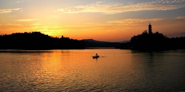 (1)川東西子湖——翠湖 出岳池東門11公里,就到了我市著名的風(fēng)景湖-岳池翠湖,即川北第一風(fēng)景湖。翠湖,原名響水灘水庫,位于城北8公里。1959年開始動(dòng)工興建,次年8月大壩建成蓄水,蓄水量近170萬立方米。后縣委、縣府充分利用自然條件,1983年將水庫興建為旅游風(fēng)景區(qū),因山清水秀,翠色可人而命名翠湖。"翠湖"二字由著名書法家李半黎書寫。有翠湖八景之說,即:玉帶長堤、平湖嵐光、芳園秋月、溢流飛瀑、銀光倒影、龜山攬勝、龍華夕照、金城煙云。