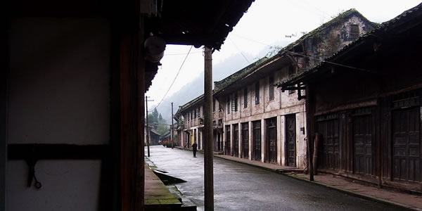 柳江鎮(zhèn)位于洪雅縣城西南25公里花溪河支流柳江兩岸,明末為三溪場(chǎng),清雍正十二年(1734)柳姜二姓改建易名柳江場(chǎng)。南宋紹興十年(1140)更名明月鎮(zhèn),歷代屢興屢廢。 柳江鎮(zhèn)位于洪雅縣,地處通往瓦屋山國家森林公園的途中,四周青山環(huán)抱,天氣晴朗時(shí)還可遠(yuǎn)眺峨嵋群峰。解放前,這里是幾家大戶人家的統(tǒng)轄之地,每戶人家都有特別之處,當(dāng)?shù)厝诉給他們?nèi)×撕糜浀拿,如誰家房子、誰家谷子等。幾家大戶構(gòu)成了柳江鎮(zhèn)的基礎(chǔ),這些單體的豪宅與秀美的山水幾近完美地組合在一起,加上臨水而建的街市,一幅活脫脫的山水畫卷,現(xiàn)存的有保存完好的特色建筑曾家大院和老街。