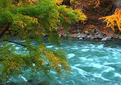三千三百道溝,三千三百道梁,溝溝有紅葉,溝溝有融雪,溝溝有泉涌。山被紅葉遮掩,水被紅葉浸染,道被紅葉鋪成,一簇簇、一團團燃成米亞羅秋的火焰。雪山,溫泉,森林,紅葉,藏羌文化,構(gòu)成一個神奇的紅色夢幻走廊。