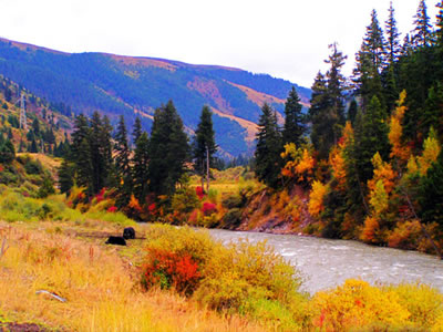 “米亞羅”是藏語,意即“好耍的壩子”,地處岷江支流雜谷腦河谷地帶!半s谷腦”也是藏語“吉祥”的意思。風(fēng)景區(qū)內(nèi)群山連綿,江河縱橫,風(fēng)光宜人,尤其是當(dāng)秋風(fēng)乍起之時,風(fēng)景區(qū)內(nèi)沿雜谷腦河谷兩岸密林中的楓樹、槭樹、樺樹、鵝掌松、落葉松等漸次經(jīng)霜,樹葉被染成為綺麗的鮮紅色和金黃色。這時候,萬山紅遍,層林盡染,3000平方公里的紅葉,如春花怒放,紅濤泛波,金黃流丹,三千里紅葉裝飾著三千里江山,成為一大奇觀。