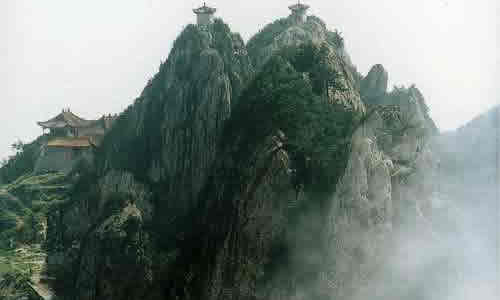 鎮(zhèn) 老君山風(fēng)景區(qū)位于鎮(zhèn)西鎮(zhèn)境內(nèi),由大、小老君山、寨子巖、河口水庫等組成,距縣城22公里,以其悠久的歷史、深厚的文化沉淀和奇麗險峻的自然風(fēng)光而聞名。 大老君山自隋威遠(yuǎn)建縣以來就是威遠(yuǎn)與榮縣的界山,為西周時周武王封周榮公之地,又名榮德山。相傳太上老君曾在此煉丹,唐末五代道士陳摶(自號扶搖子,宋太宗賜號希夷先生)曾在此修真,故又名希夷山。老君山從唐宋以來就已成為道家的修煉之地和風(fēng)景名勝之地,清乾隆《威遠(yuǎn)縣志》稱為"老君丹灶",是威遠(yuǎn)八景之一。老君山海拔800多米,雄奇瑰麗,方若削壁,高矗云表,有華山之險。從山腳到山頂,只有一條狹窄陡峭的曲折小道,攀登時須手腳并用方可。山西南面崖壁上刻有四則題詩、四龕唐宋造像、三通摩崖碑和三則題字。摩崖造像中保存完好又富有代表性的是太上老君及侍者力士造像。其中佛道合龕造像在四川極為罕見。題詩以清末翰林、榮縣詩人趙熙的一首最為精彩:"一念前生墮世間,飄然人外御風(fēng)還。秋來化鶴三千歲,獨(dú)立榮州第一山。"三則題字分別為"煙霞"、"云梯"、"丹巖"。在山的西南面,有一古洞,相傳是太上老君煉丹時居住之地,人稱"神仙洞"。大老君南面為呂仙崖,上有四龕唐代摩崖造像,山上尚保存古寨集生寨城墻遺址。 寨子巖山寨位于去老君山途中的煙廠河壩,為清咸豐年間建造,現(xiàn)保存寨墻一段、石室一間,有月亮門、楊家大院遺址及"天寶亭"、"玩花臺"、"臥鵂橋"等10余處石刻題字,其中半山腰處一兩米見方的"鵂"字為威遠(yuǎn)迄今為止發(fā)現(xiàn)的最大刻字。寨下河中有一蘑菇狀巨石,兀立于一方硬石之上,似搖搖欲墜,又穩(wěn)若磐石,人稱"牛心石"。 小老君山在大老君東側(cè)約6公里處,尖聳秀拔,山頂面積不過50平方米,整個山形似雄鷹展翅欲飛。山下即是河口水庫,湖水清澈,碧波蕩漾。水庫源頭有一碗口粗大的泉水,從石縫中涌出,這就是有名的"龍洞泉水"。 景區(qū)附近還有字庫塔、抗日陣亡將士紀(jì)念碑、碧佛洞等景點(diǎn)。鎮(zhèn)西的醬蘿卜、花生糖為久負(fù)盛名的地方特產(chǎn)。鎮(zhèn)西鎮(zhèn)有公共汽車直達(dá)老君山腳一中巖洞。 |