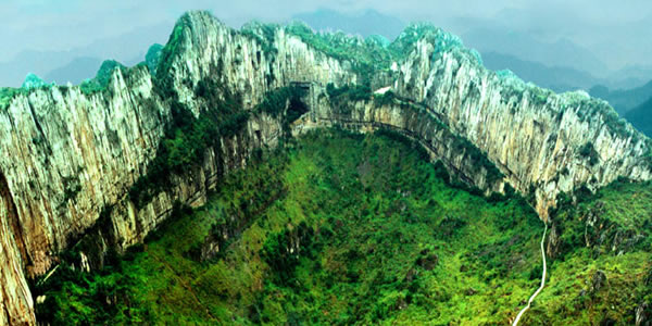 離后洞不遠(yuǎn),有一碗形洼地,為天然大漏斗(一種特定的地理現(xiàn)象),直徑650米,深208米,超過號稱世界第一的美國阿里西波大漏斗(直徑330米,深70米),堪稱世界一絕。興文天然大漏斗,被中國世界紀(jì)錄協(xié)會收錄為世界最大天然大漏斗候選世界紀(jì)錄。1935年,一名掉隊的紅軍小戰(zhàn)士,被當(dāng)?shù)胤磩游溲b俘后拋人洼心,故人們將此地一處石巖取名為紅軍巖。