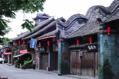 在不趕集的日子里,街上很安靜,走在石板路上能清晰的聽(tīng)到自己的腳步聲。從麒麟街上的黃氏和羅氏故居能依稀看到元通曾經(jīng)的華麗,臨河小巷口的哥特式建筑展示著小鎮(zhèn)曾經(jīng)的華麗!≡诔缰萦袀(gè)古鎮(zhèn)——它不張揚(yáng),但處處透著掩飾不住的貴氣;它不出名,可走近后卻發(fā)現(xiàn),它的內(nèi)涵已超過(guò)許多已出名的古鎮(zhèn)。它位于成都——崇州——都江堰的旅游通道上,人們?nèi)ソ肿、文錦江、雞冠山、九龍溝……旅游點(diǎn),一般匆匆而去,很少走進(jìn)它,它就是在清代就有“小成都”之稱的元通古鎮(zhèn)。這是個(gè)離成都市區(qū)很近的古鎮(zhèn)。