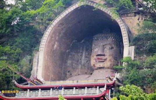 榮縣大佛位于四川省榮縣縣城東郊,為唐代所刻,佛像坐南面北,是一尊釋迦牟尼摩崖石刻造像,佛身通高36.67米,頭長(zhǎng)8.76米,肩寬12.67米,膝高12米,腳寬3.5米,是世界第一大釋迦牟尼佛(現(xiàn)世佛),第二大石刻大佛。