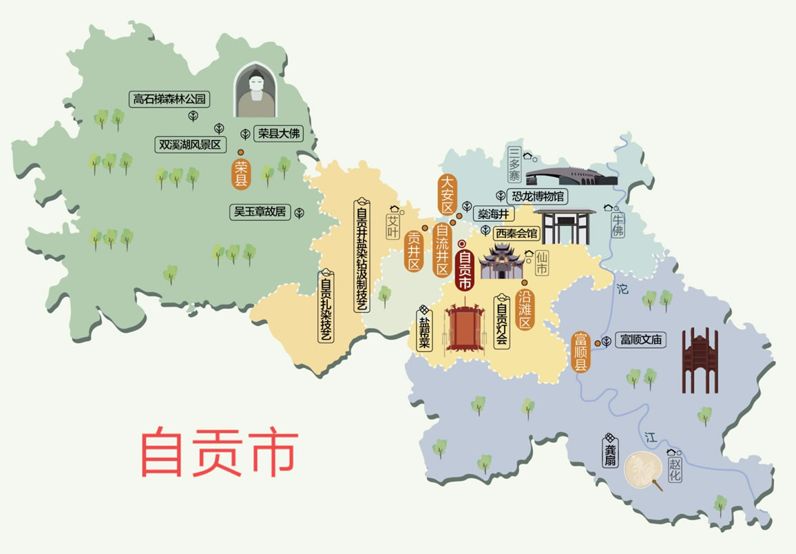 自貢市轄4個(gè)區(qū)、2個(gè)縣: