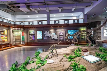 自自貢恐龍博物館的現(xiàn)有基本陳列“侏羅紀(jì)恐龍世界”,按照“恐龍世界——恐龍遺址——恐龍時代的動植物——珍品廳——恐龍再現(xiàn)”順序展開,吸收現(xiàn)代陳列理念,采用場景式展示、擬人化組合,輔之以聲、光、電及多媒體等展示手段,展開了一幅蔚為壯觀、神奇瑰麗史前畫卷,再現(xiàn)了由恐龍及許多早已消失的物種構(gòu)成的神秘多姿的侏羅紀(jì)時代。同時,還突出展示了博物館的精華—化石埋藏現(xiàn)場,給人以強烈的視覺沖擊和心靈震撼,充分體現(xiàn)了專業(yè)博物館與遺址博物館的雙重特色。