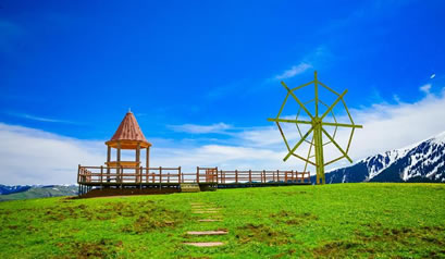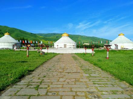 哈薩克語為草原會客廳,是古時候草原民族商量重大事宜的地方,現(xiàn)為景區(qū)河谷草原線路的綜合服務(wù)區(qū)?晒┯慰腕w驗騎馬、射箭、民族服裝留念、古道馬車、草地摩托車、住宿、直升機觀景等娛樂項目、餐以及住宿服務(wù)。