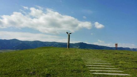天上的云像是潔白的羊群圍繞著連綿的山峰,又像是奔騰的駿馬馳騁在山谷間。云霧相遇纏繞,仿佛置身于云海之中,故而得名天云臺。陪伴在天云臺身邊的是一幅巨型的草原姑娘浮雕,展示了哈薩克族女性的勤勞與善良,仿佛在說:“有朋自遠方來不亦樂乎”。