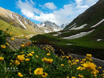 天神臺空谷幽靈,舉目藍天如洗,白云飄逸,雪山聳立。又名“雪蓮谷”,因海拔達到了3000米似與神靈同住,讓心靈在圣潔中凈化。又因其在天空中鳥瞰酷似一朵盛開的雪蓮花而得名,周圍險峻的山峰如同雪蓮花瓣,山谷中奇異的鮮花如同雪蓮花蕊。積雪為雪蓮的生長提供了適宜的環(huán)境,每年7、8月份雪蓮花孤傲綻放,獨語高山。