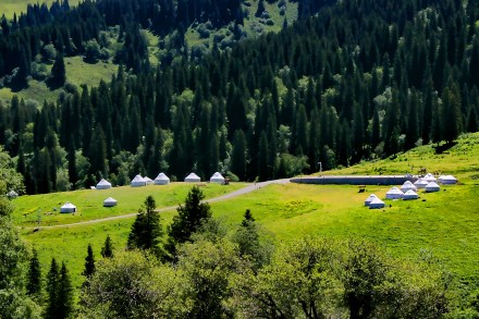 位于河谷草原線路、冰河景觀道、盤龍谷道的十字路口,由烏孫古部落、連心湖、哈薩克民俗文化展示區(qū)及牛欄餐吧組成,是哈薩克族民俗文化的集中展示區(qū),可親身體驗參與哈薩克族豐富多彩的生產(chǎn)生活,盡享草原民俗風(fēng)情的淳樸謙和。走出依提更塞民俗體驗區(qū),向西穿過天光云影共徘徊的連心湖,就到了草木掩映中的“烏孫部落”。這里反映著哈薩克族原始的生活場景,沿著山林、草原、河岸,山水之遇。
