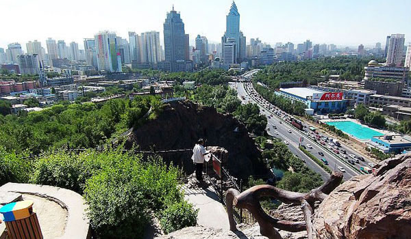 紅山位于烏魯木齊市中心,山巖突兀,每當(dāng)晨昏,巖壁映日,紅光熠熠,因而得名。山勢呈東西走向,主峰海拔1391公尺。因山頭狀如猛虎,峭巖色赤,故又稱“虎頭山”、“紅山嘴”。紅山與對面不足千米遠(yuǎn)的雅馬里克山相對峙。山下,烏魯木齊河縱貫?zāi)媳。紅山已成為烏魯木齊市的象征之一。