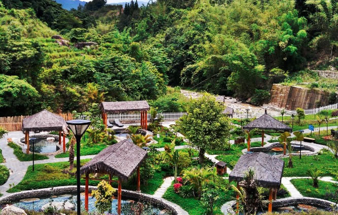 溫泉 龍陵縣共有42處溫泉,分布在縣內(nèi)的各個鄉(xiāng)鎮(zhèn),其中溫泉最集中的是被譽為“神湯奇水”的邦臘掌,泉區(qū)溫泉密布,有泉眼100余孔,日供水量1382.4立方米,最高水溫達102攝氏度,僅在0.4平方公里區(qū)域內(nèi)就容有氡氟泉、碳酸泉和硫磺泉等多種溫泉,堪稱“溫泉博物館”。