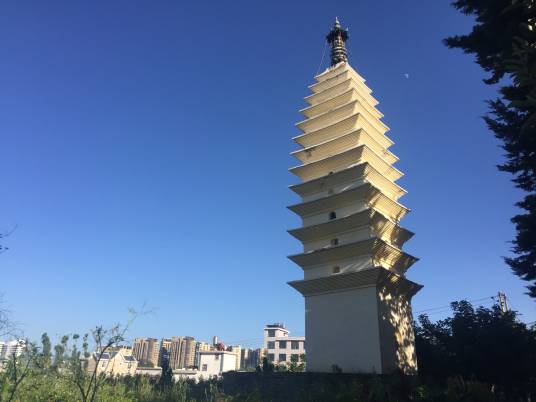佛圖寺塔,位于云南省大理白族自治州大理市下關(guān)街道羊皮村北側(cè)的佛圖寺前,約建于唐南詔時(shí)期(737~938年)。