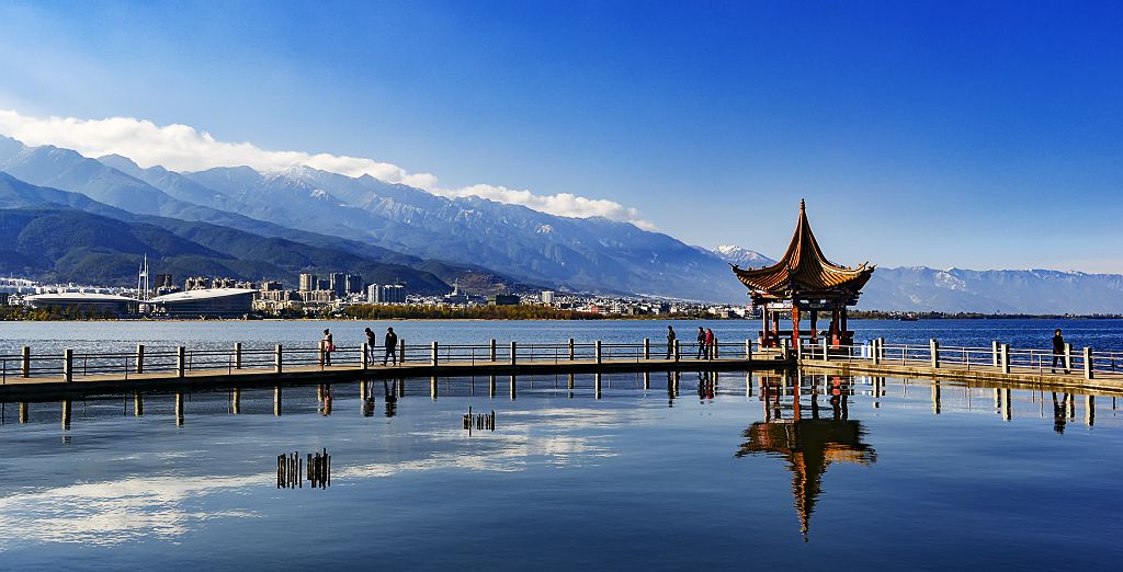 洱海,在古代文獻(xiàn)中曾被稱為“葉榆澤”“昆彌川”“西洱河”“西二河”等,位于云南省大理白族自治州大理市北部。水面海拔1972米左右,南北長(zhǎng)41.5公里,東西寬3至9公里,周長(zhǎng)116公里,面積251平方公里。